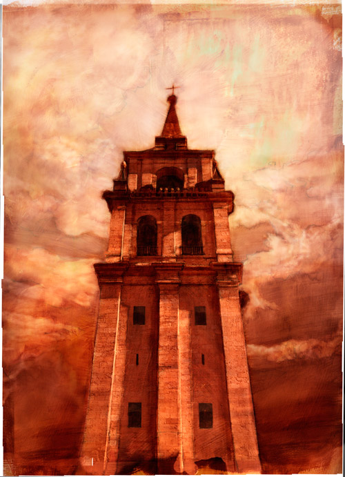 I've knocked back the intensity of the blue to keep it in the background, allowing the Cathedral to take center stage. I also added just enough intensity in the clouds to not create a pasted-together look between background and foreground.